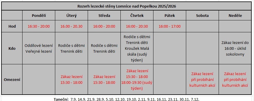 Lezení pro veřejnost se koná v pondělí od 17:00 do 20:00 vždy po telefonické domluvě 724 158 258